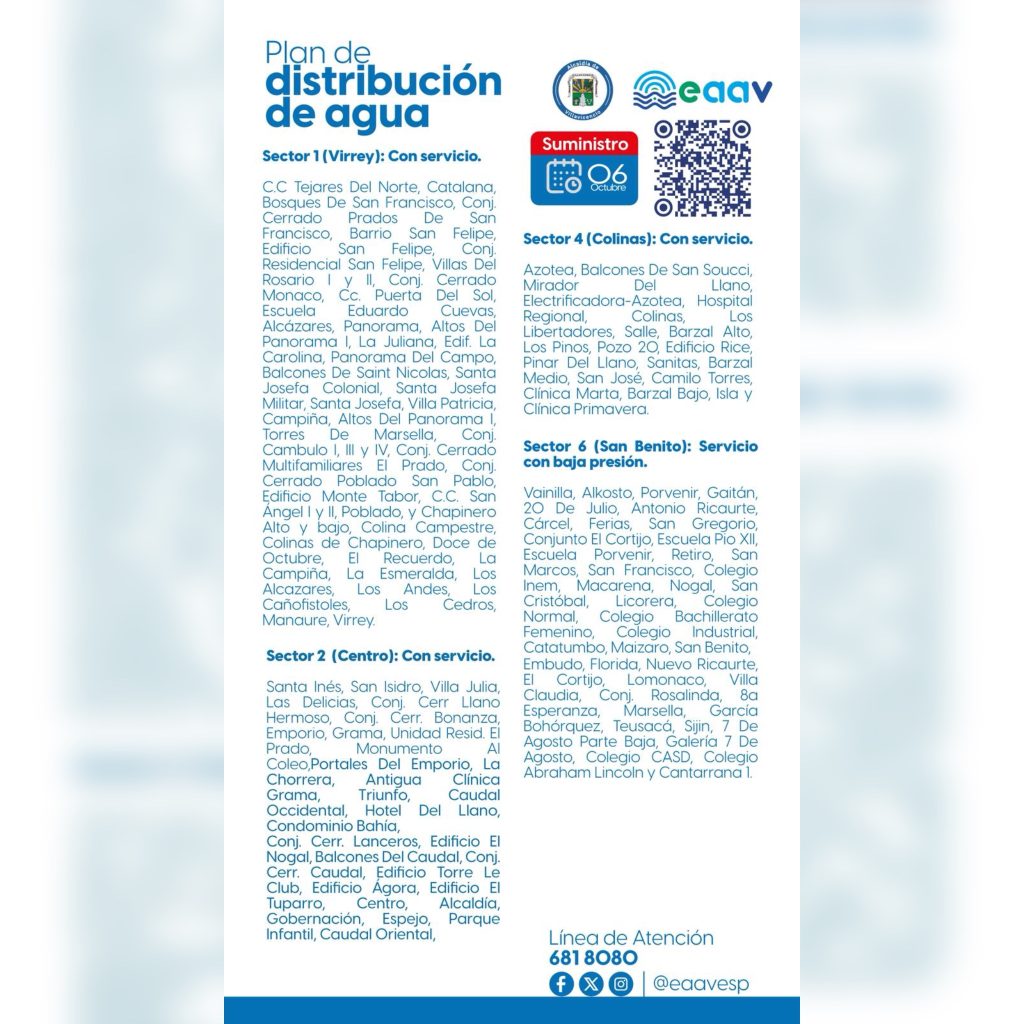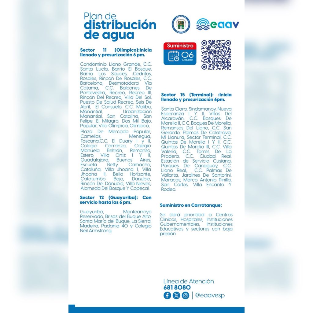 Así serán los turnos en el suministro de agua para hoy lunes 06 de octubre.💧