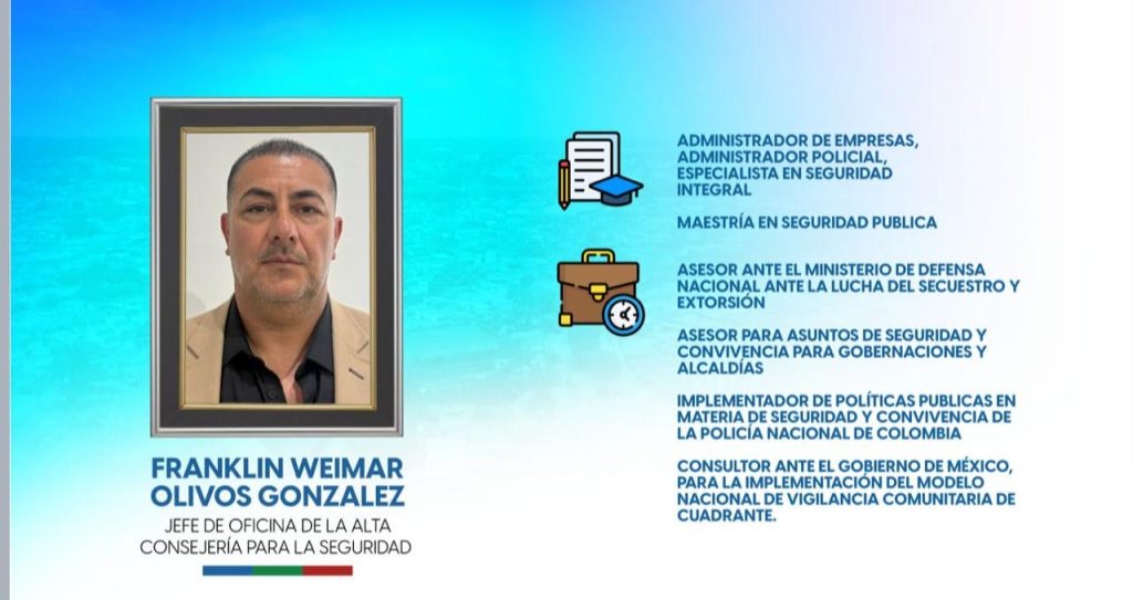 4.- Franklin Weimar Olivos González, Mayor (r) de la Policía Nacional, Jefe Oficina de la Alta Consejería para la Seguridad y la Convivencia Ciudadana;