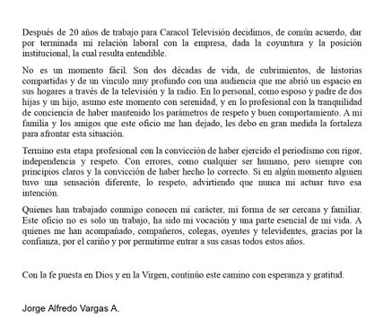 - La salida de Vargas se dio tras un pronunciamiento oficial de Caracol Televisión, en el que el canal anunció decisiones frente a los presentadores involucrados en la polémica.