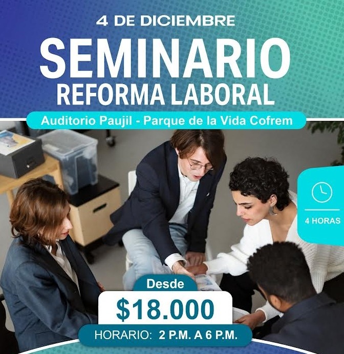 La Caja de Compensación Familiar invita a tomar parte y actualizarse el jueves 4 de diciembre en el Seminario Reforma Laboral, que ofrece a través de Capacitación Empresarial Cofrem, en el auditorio Paujil del Parque de la Vida de Villavicencio.