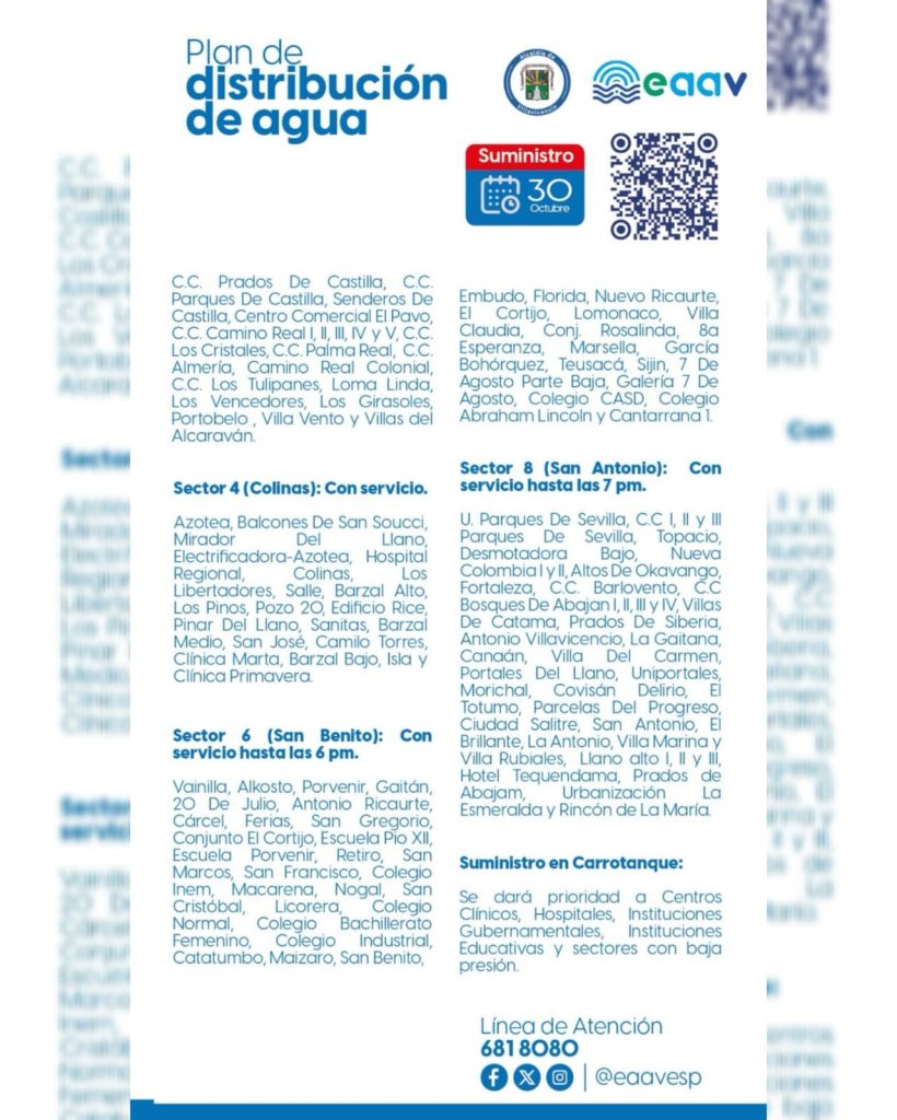 Se recomienda a los usuarios tomar medidas preventivas: conservar reservas de agua y evitar su uso innecesario hasta que el servicio se restablezca en cada turno asignado.