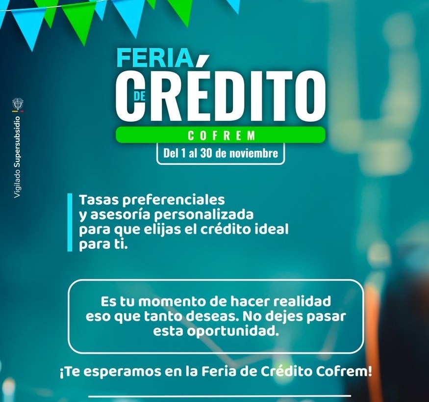 Hasta el 30 de noviembre los trabajadores afiliados tienen la oportunidad de beneficiarse con la Feria de Crédito de Cofrem, que ofrece tasas de interés desde el 0.91% mes vencido, y que se otorga en préstamos destinados a libre inversión.
