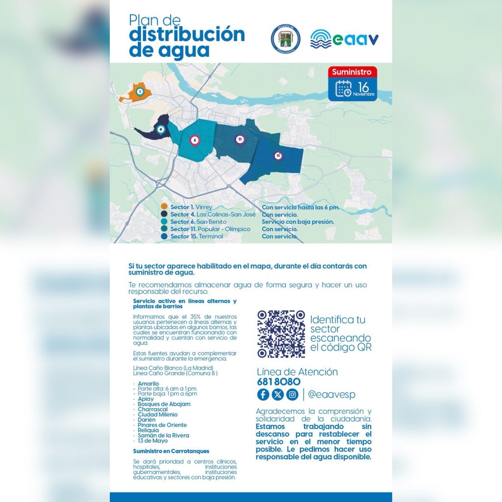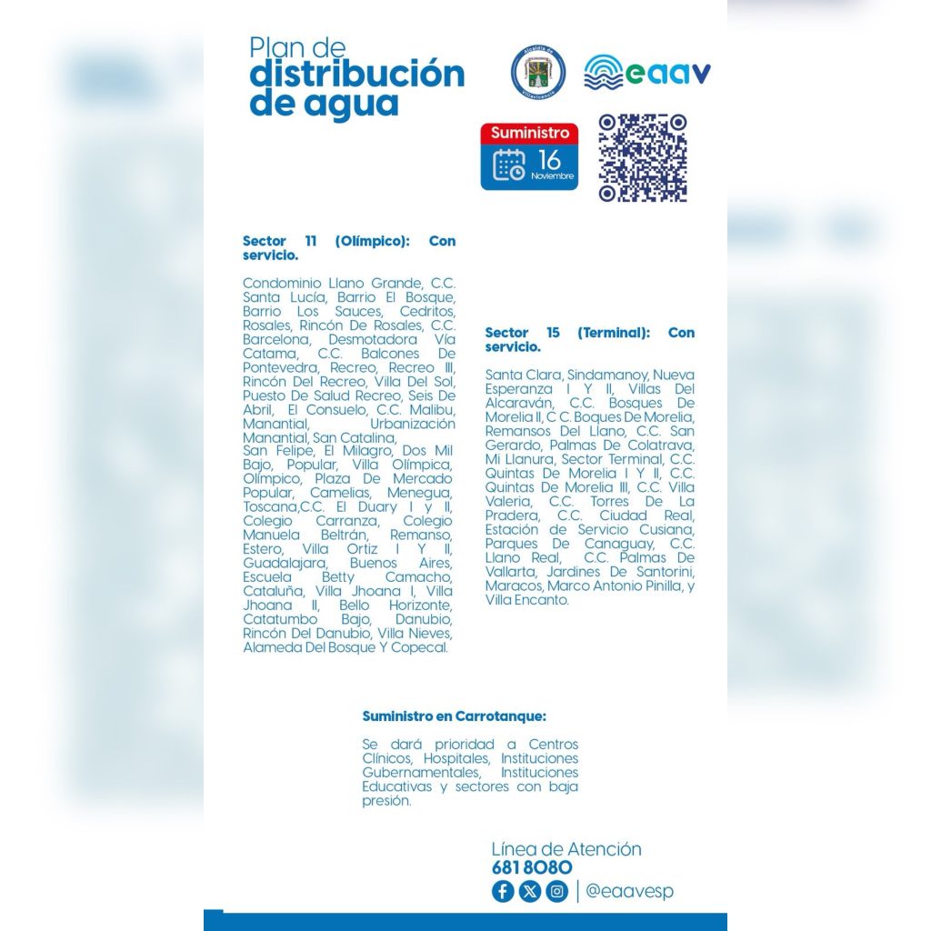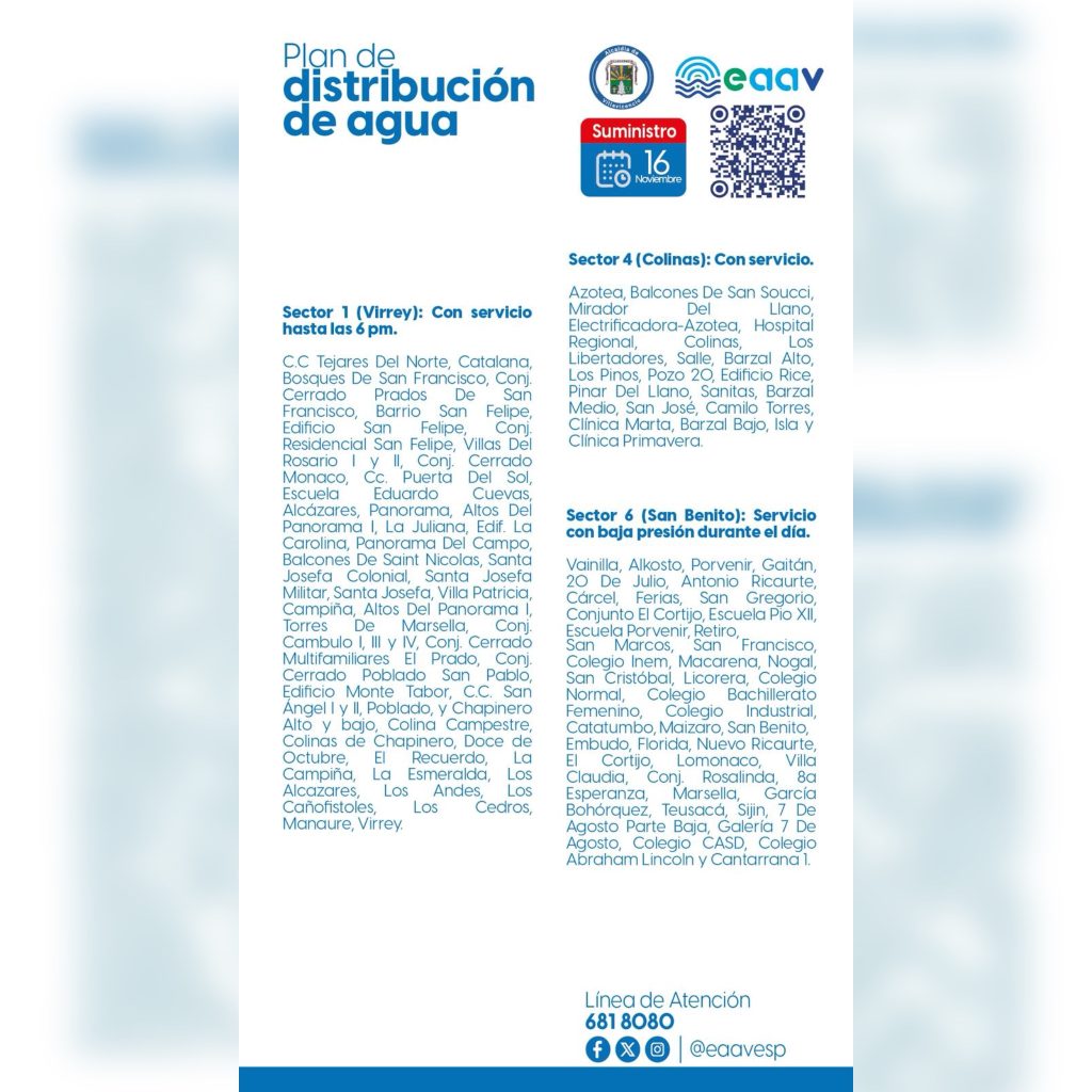 Así serán los turnos en el suministro de agua para hoy domingo 16 de noviembre.